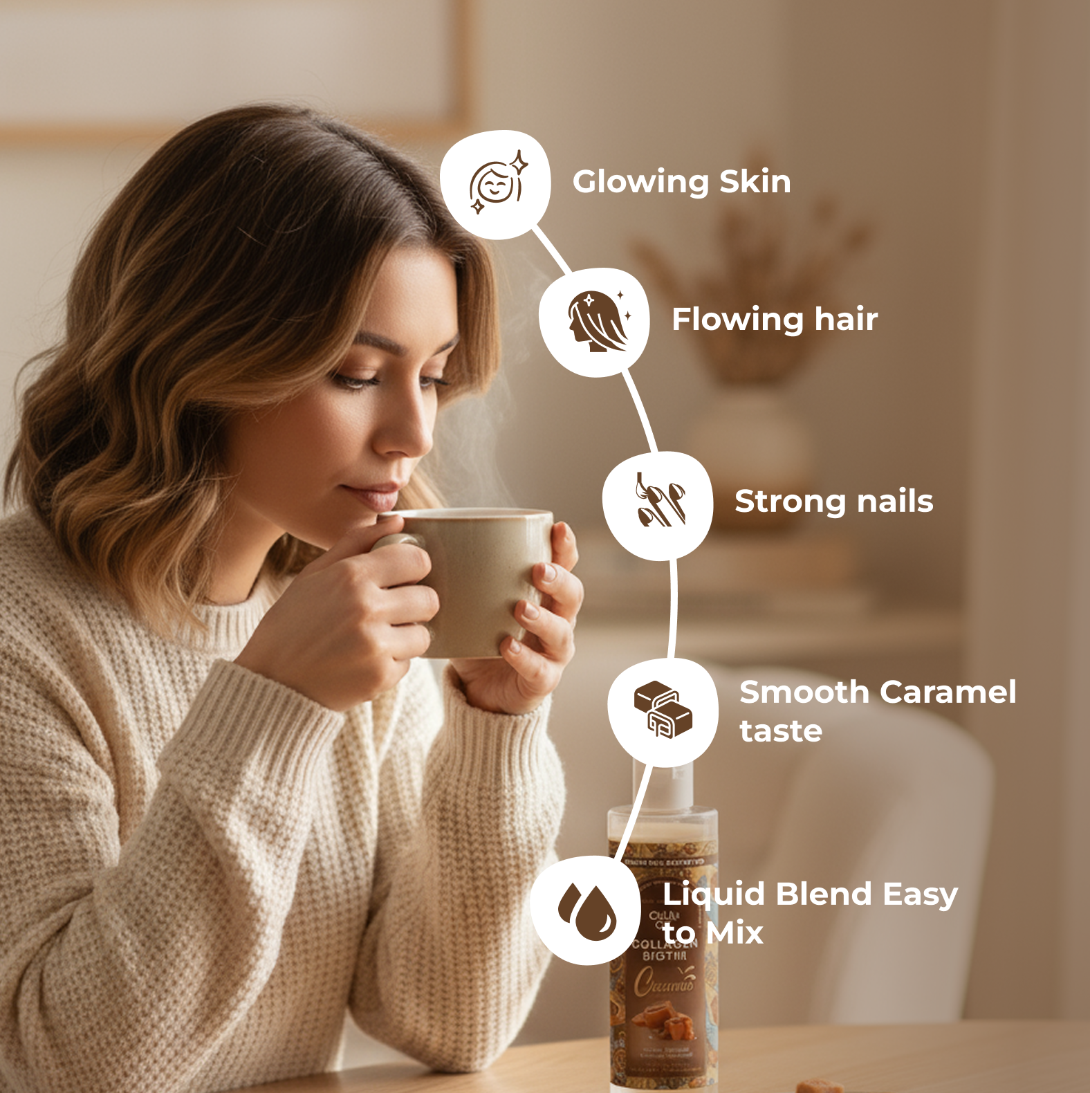 - COLLAGEN FOR HAIR SKIN AND NAILS: Our low carb, keto friendly collagen creamer for coffee helps support glowing skin, hair and nails. Add this non dairy creamer to your daily morning coffee for a boost of collagen. Collagen is also great for connective tissue and joints.